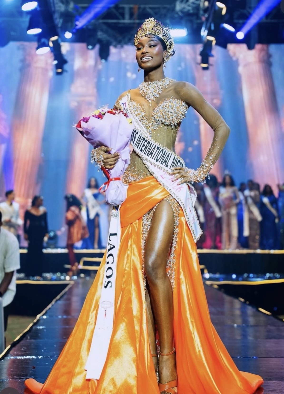 In a defining moment for Nigeria’s pageantry scene, Damilola Bolarinde has emerged as one of the standout beauty queens of 2026 after clinching the Face of Hope crown and being officially crowned Miss International Nigeria 2026 at a glamorous grand finale held at the Eko Convention Centre in Lagos. The event, which brought together contestants from across the country after weeks of intensive grooming, interviews, and public engagement rounds, culminated in a win that highlighted her consistency, elegance, and strong public appeal. Bolarinde, representing Lagos State, secured her victory ahead of strong contenders including Miss Anambra and Miss Rivers, ultimately earning the honour of representing Nigeria on the global stage at Miss International 2026 in Japan later this year. Her crowning moment was made even more symbolic with the presence of reigning Miss International 2025, Catalina Duque of Colombia, who passed on the title, reinforcing the international recognition of her achievement.